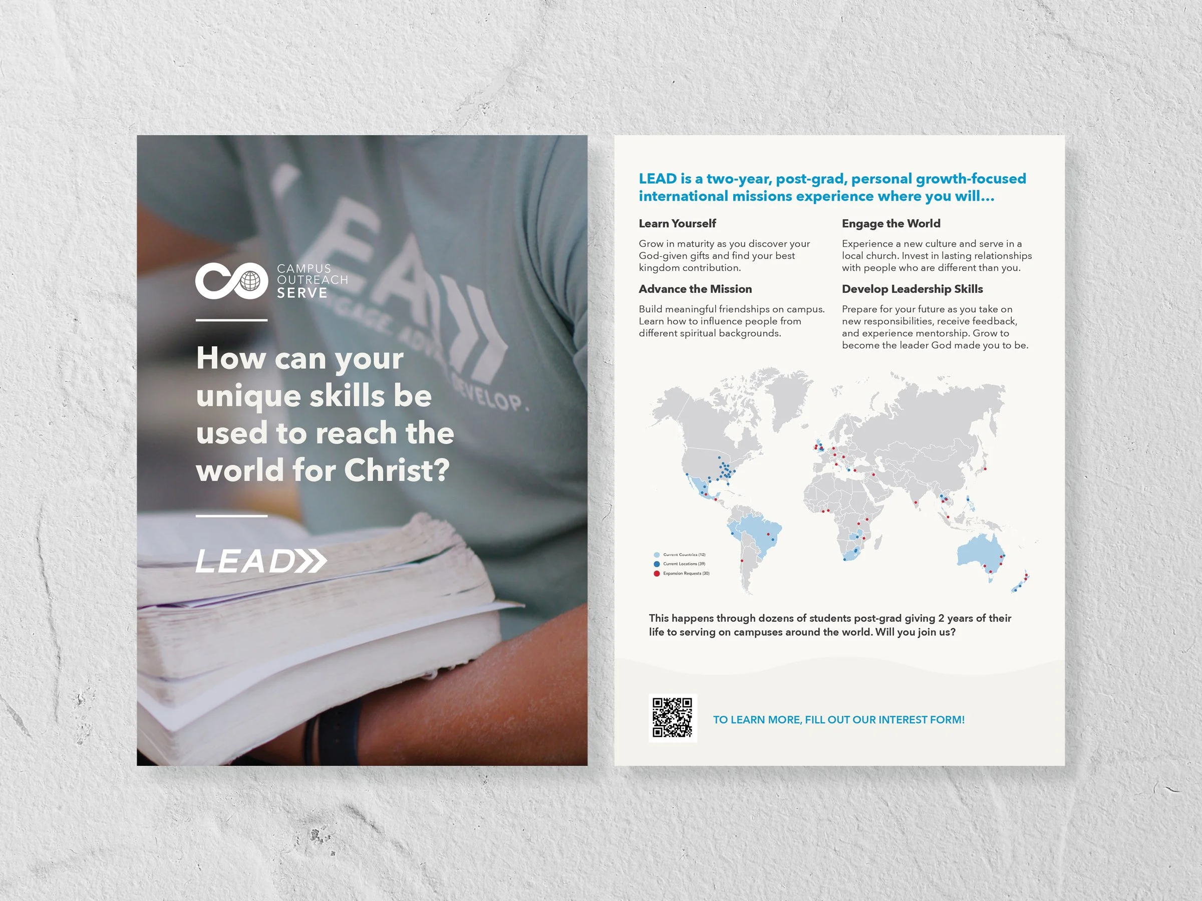 What began with a support card concept soon turned into an effort to bring brand continuity and clarity throughout the print, digital, and web experiences for the Campus Outreach LEAD Mobilization team. After developing an updated card template, we began with a refresh of the LEAD and NEXT program websites, focusing on the path of the student user journey. From there, we were able to update the promotional table banners and presentation, along with a number of standard print collateral pieces.